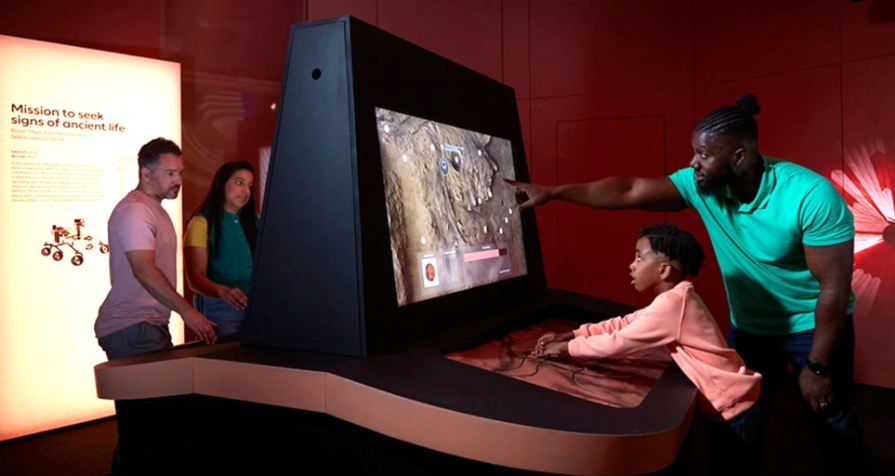 Interactive Mars rover stations help you explore the planet’s surface and virtually collect samples for a mission (© Natural History Museum).